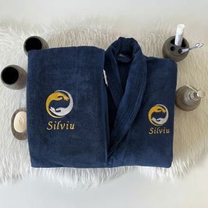 Halate de baie pentru barbati din bumbac 100%, albe sau colorate (bleumarin, grena, turcoaz, verde, etc.), disponibile in toate variantele de marimi (S-7XL)! Pentru ca ne-am specializat in domeniul halatelor de baie, va putem oferi o gama foarte variata de halate de baie pentru barbati din care sa puteti alege: halate dense si groase, halate catifelate la exterior (potrivite si ca halate de casa), halate mai fine, mai subtiri, halate gofrate (tip fagure). In privinta marimilor, ne straduim sa oferim o gama completa de halate de baie barbatesti, astfel incat sa ne putem adresa oricaror dimensiuni, de la mici (marimi precum S sau M) la mari si foarte mari (pana la 7XL). Personalizate prin broderie cu un design, o monograma sau cu semnul zodiacal, precum si cu un text la alegere, halatele de baie barbatesti se pot transforma in cadouri ideale pentru orice barbat iubit din viata Dvs, sot, tata, bunic sau pur si simplu prieten! Va recomandam si halatele de baie de dama si pentru copii, prin care puteti crea si seturi pentru intreaga familie, personalizate unitar cu un design la alegere, blazonul (monograma) familiei sau semnul zodiacal al fiecarui membru.