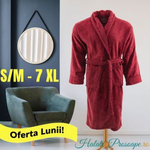 - Halat baie bărbați Grena (bordeaux), cu guler sau cu glugă, mărimi S/7XLPreț standard 194,00 RON Preț special 159,00 RON