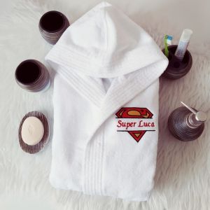 Toate mărimile și o gamă variată de culori, pentru fete și băieți! Aceasta este promisiunea noastră în privința ofertei de halate de baie pentru copii, întotdeauna din bumbac 100%. Atunci când ies din baie, din piscină sau din apa în care au înotat, halatul de baie reprezintă accesoriul ideal în care să se usuce și să se încălzească rapid. Vă oferim halate de baie pentru copii în 7 variante de marimi (1-2 ani, 3-4 ani, 5-6 ani, 7-8 ani, 9-10 ani, 11-12 ani și 12-13 ani) și vă recomandăm să cumpărați, în general, mărimea următoare vârstei efective a copilului, pe principiul "mai bine să fie mai mare și să poată fi purtat mai mult timp decât să fie prea mic". Halatele de baie pot fi personalizate prin broderie și transformate într-un cadou ideal pentru cei mici, simpatic, original dar și foarte util. Halatele de baie sunt disponibile în doua variante: halate brodate din fabrică cu ursuleț și albinuțe, pe care noi le putem personaliza cu un text la alegere (numele copilului) și halate de baie simple, pe care le putem broda atât cu un text cât și cu un design la alegere, dintre cele disponibile (inclusiv monograme sau semnele zodiacale). Acestea din urmă se pretează și ca parte a unor seturi pentru întreaga familie, brodate în același stil (același design, blazonul / monograma familiei, semnul zodiacal al fiecărui membru al familiei).