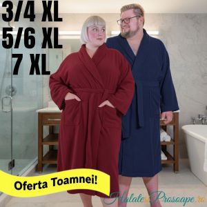 Vă recomandăm și halate de baie măsuri mari și foarte mari, din bumbac 100%, disponibile și ele chiar în mai multe variante de mărimi!