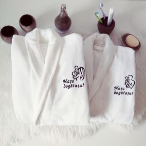 Am creat pentru Dvs. diverse variante de seturi de halate de baie si prosoape (2 halate de baie / 2 prosoape / 2 halate de baie si 2 prosoape / halat de baie si prosop / set complet de prosoape de baie, etc), adaptate, prin personalizare, atat pentru barbati cat si pentru doamne, dar orice alta varianta este posibila, important este ca acestea sa se potriveasca necesitatilor si specificului bailor Dvs.